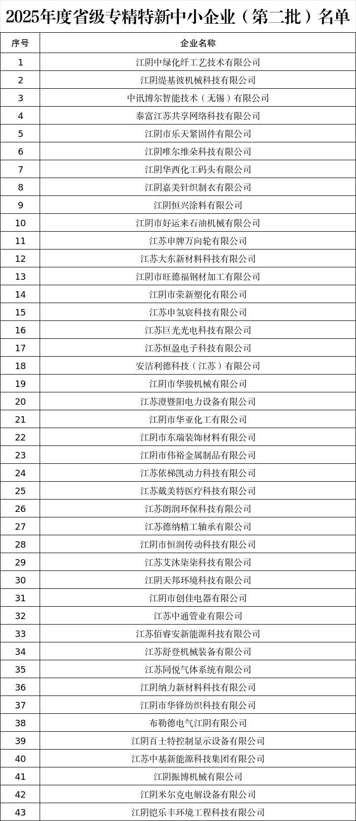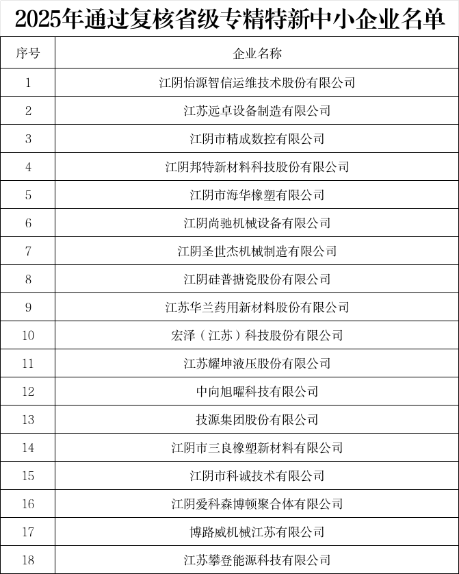 近日,江苏省工业和信息化厅发布《关于江苏省2025年度省级专精特新中小企业(第二批)认定和通过复核企业名单的公示》,其中,临港开发区43家企业获评省级专精特新中小企业,18家企业通过复核。